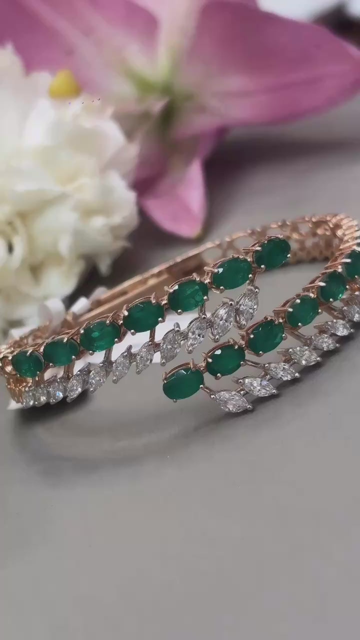 Say hello to effortless elegance! ✨💚Our Emerald Embrace bracelet is a graceful fusion of timeless sparkle and modern charm. With lush green emeralds lined beside marquise-cut diamonds, this beauty wraps your wrist in nature-inspired luxury.Whether you’re dressing up for a big celebration or just want to feel a little extra on a regular day, this bracelet has you covered. It’s that kind of piece—bold, delicate, and oh-so-beautiful. 🌿💎
