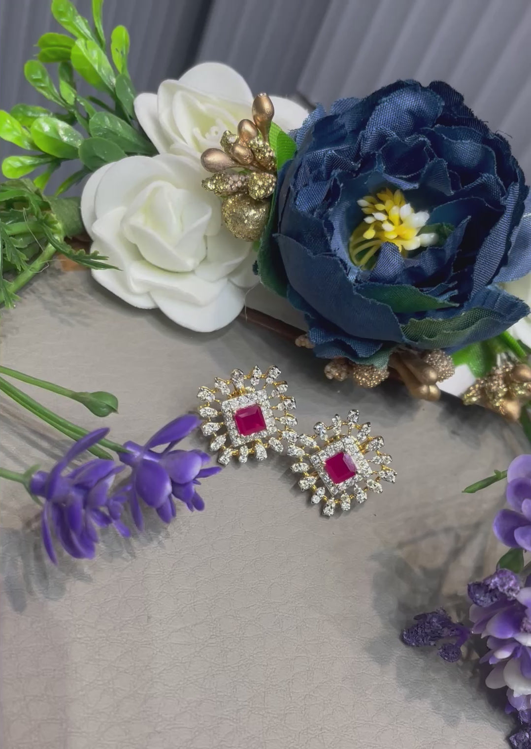 Command attention with these radiant ruby square studs framed in a glittering halo of diamonds. ❤️💎A blend of bold elegance and timeless charm, these earrings feature a deep red center stone that symbolizes love, passion, and strength. Perfect for festive celebrations, weddings, or adding a pop of luxurious color to your ensemble, these earrings are crafted to make you shine with unmatched grace.Elevate your look with a touch of royal red — where tradition meets brilliance. 💫