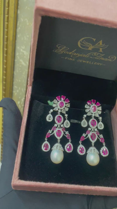 - Abreathtaking blend of rubies, diamonds, and South Sea pearls crafted to perfection—these earrings bring timeless elegance to every look💎✨💫